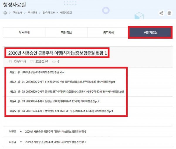 공동주택 하자보증보험, 간편하게 인터넷으로 확인방법1(사진제공=용인시) 공동주택 하자보증보험, 간편하게 인터넷으로 확인방법2(사진제공=용인시) 용인시 수지구는 다세대주택이나 연립주택 등 소규모 공동주택의 하자보증보험증권을 구청 홈페이지에 공개한다고 14일 밝혔다. 공동주택 하자 보증보험은 건축주가 공동주택 준공 후 사용승인을 받을 때 관계 법령에 따라 시·구청에 의무적으로 표준건축비의 3%를 예치하는 제도다. …