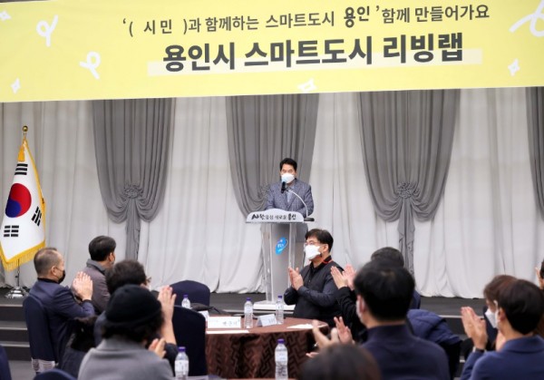 15일 열린 용인시 스마트도시 리빙랩 발대식에서 인사말을 하고 있는 백군기 용인시장.(사진제공=용인시) 용인시가 ‘용인시 스마트도시 리빙랩’ 발대식을 열고 운영을 시작했다. 리빙랩은 스마트기술을 접목해 마을의 문제를 해결하는 일련의 과정으로, 시는 시민들과 함께 지역의 문제를 발굴하고 정보통신기술(ICT)을 활용한 해결 방법을 모색하기 위해 참여단을 기획했다. 리빙랩 참여단은 사전 모집을 통해 선발한 30명의 시민, 3명의 ICT 전문가와 관계 공무원 6명 등 총 …
